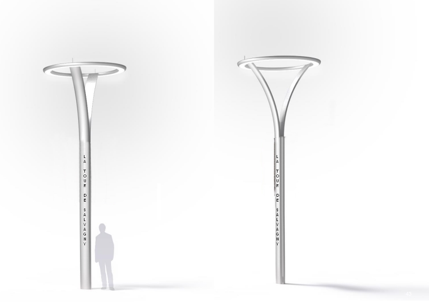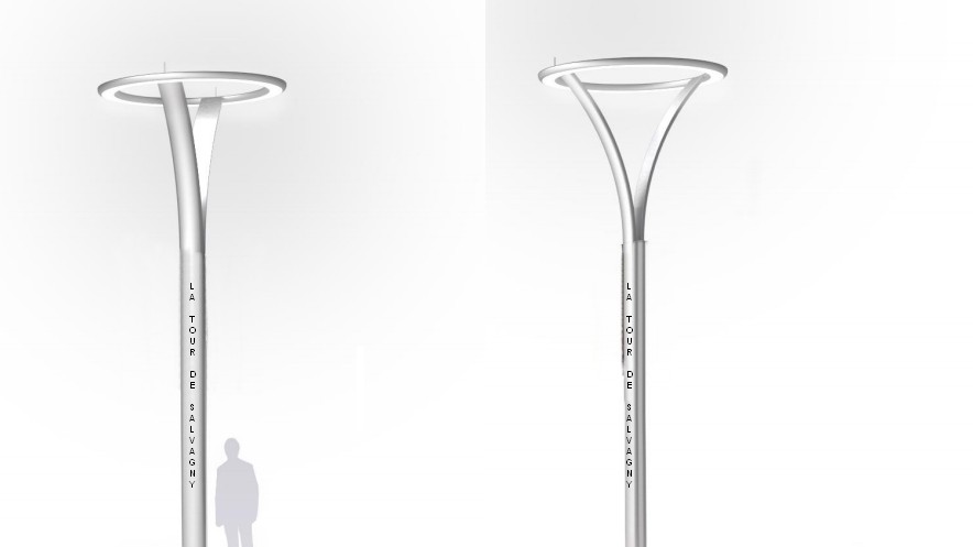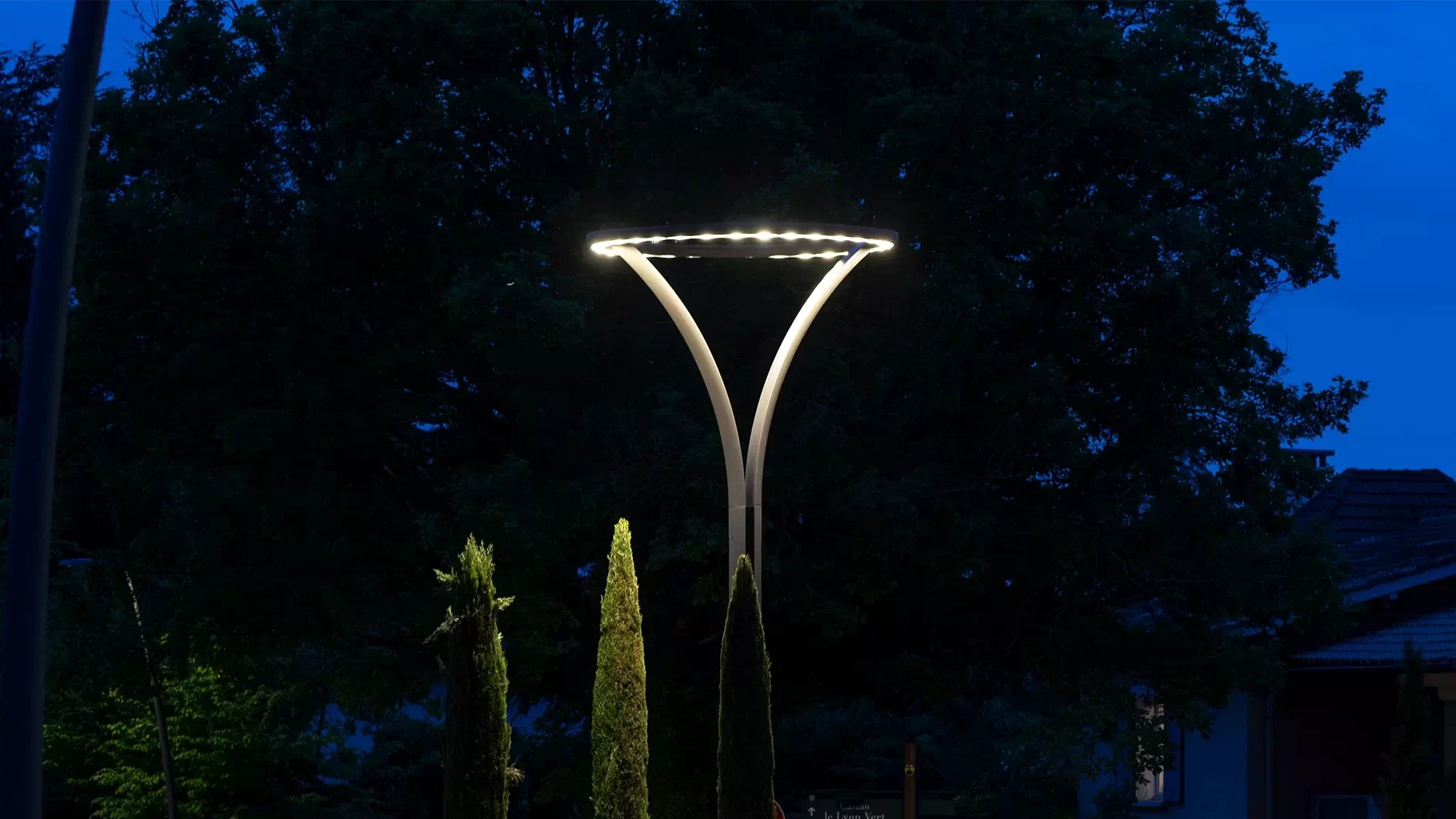 Michaël Charrière : « J’avais eu un coup de foudre sur une imagerie présentée lors du salon Light & Building de Francfort, que j’ai reprise et dont j’ai effacé quelques options telles que l’écran télévisé (qui était sur les côtés dans le dessin de base). Je l’ai présenté à la commune, qui a aussi adoré le design particulier de ce luminaire et a accepté de le poser. C’est un projet qui a nécessité beaucoup de patience, car il y aura eu 4 ans entre l’imagerie et la pose effective du mât. Un délai lié à de nombreux évènements comme la modification de la réglementation lumineuse fin 2018, et bien entendu la crise sanitaire. Mais l’attente en a valu la peine et le résultat est magnifique ! »