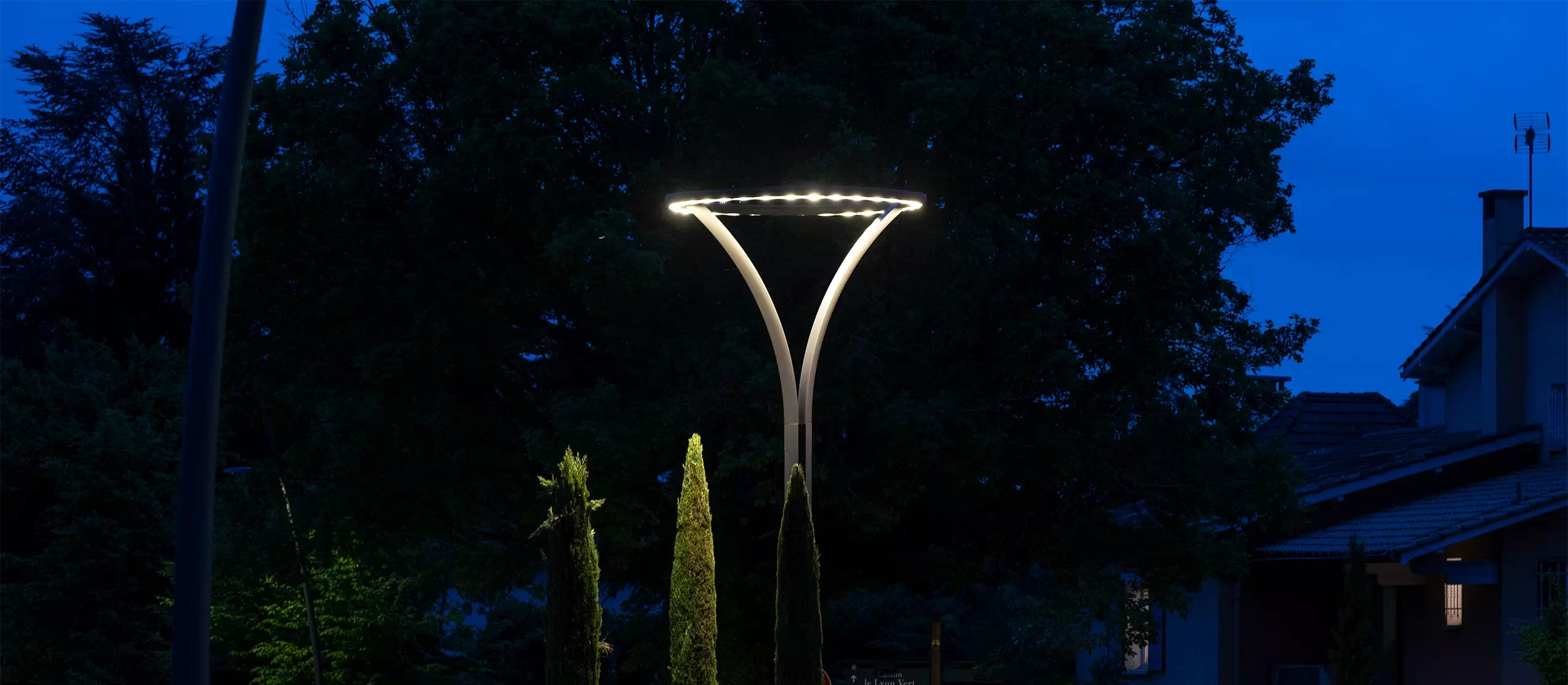 Michaël Charrière : « L’objectif global était de supprimer les luminaires les plus énergivores de la commune, en créant une ligne visuelle différenciante, afin de distinguer la commune de ses voisines en matière de mobilier d’éclairage. En 2017, la construction de l’A89 avec la création de l’entrée / sortie « La-Tour-de-Salvagny », et la requalification de la voirie par la Métropole de Lyon, ont sonné le coup d’envoi de cette nouvelle ligne. Elle s’est traduite par des ensembles de la gamme RAGNI composés du luminaire ATINIA SLIM sur mat cintré IRO à une hauteur de feux de 6 mètres en face à face, créant ainsi un effet d’arche lumineuse qui nous guide vers le centre de la commune. »