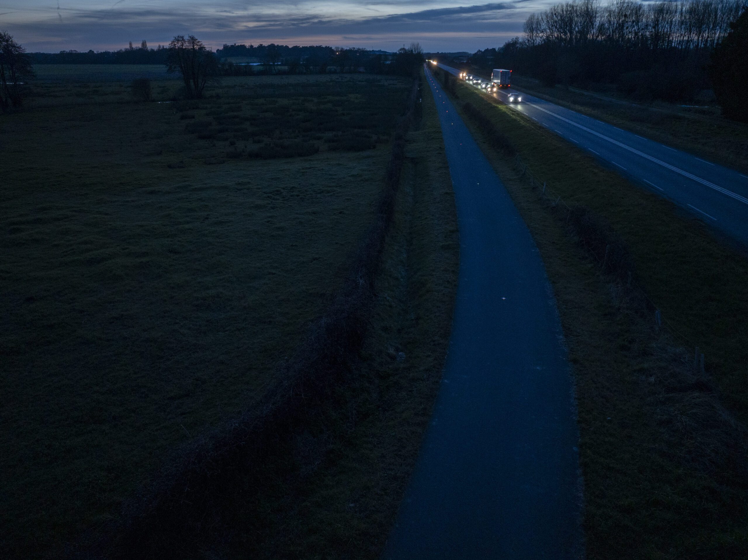 Outre leur autonomie énergétique, ces dispositifs ont été pensés pour s’intégrer harmonieusement à l’environnement. Les plots encastrés émettent une lumière ambrée, réduisant l’impact sur la faune et la flore locales tout en limitant l’éblouissement pour les axes routiers avoisinants.