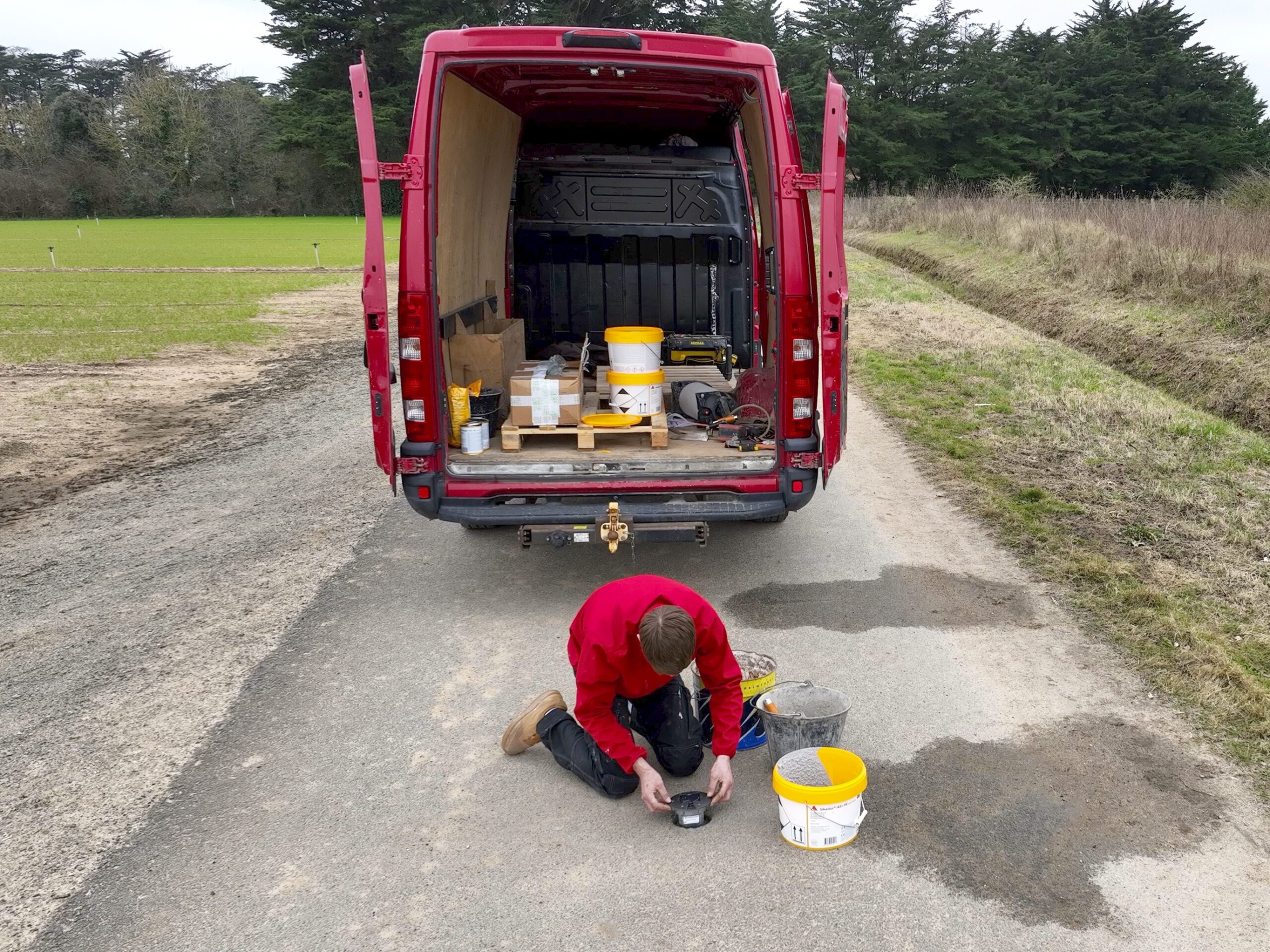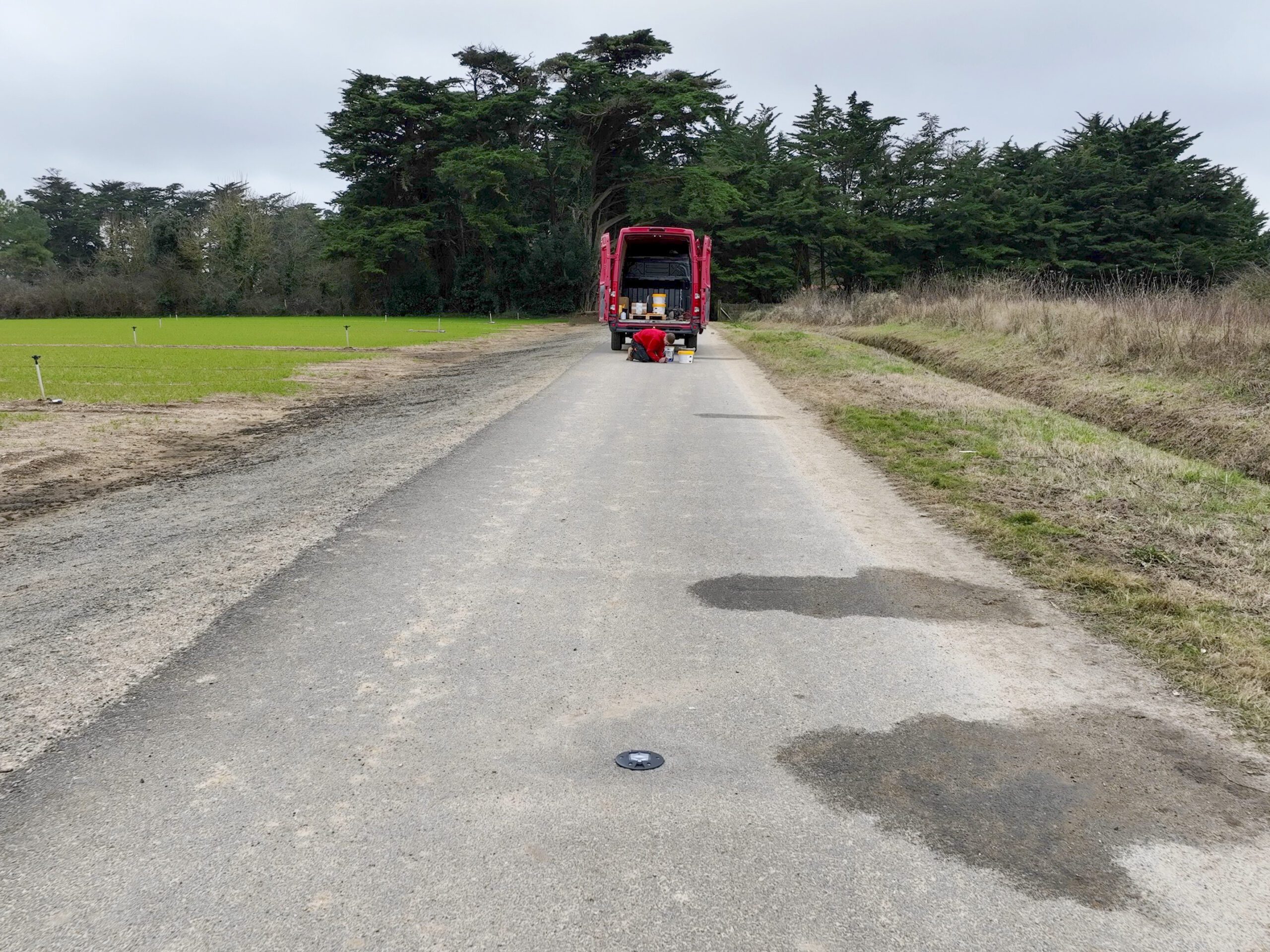L’une des difficultés majeures de ce projet résidait dans l’impossibilité de passer des câbles pour alimenter l’éclairage traditionnel. La solution retenue a été un système de balisage solaire, utilisant des encastrés lumineux ECO-143. « Ce produit résistant et facile à mettre en œuvre ne nécessite qu’un carottage dans le bitume et l’application d’une colle spécifique pour assurer son adhérence », explique Sylvain Louërat, artisan électricien impliqué dans le projet.