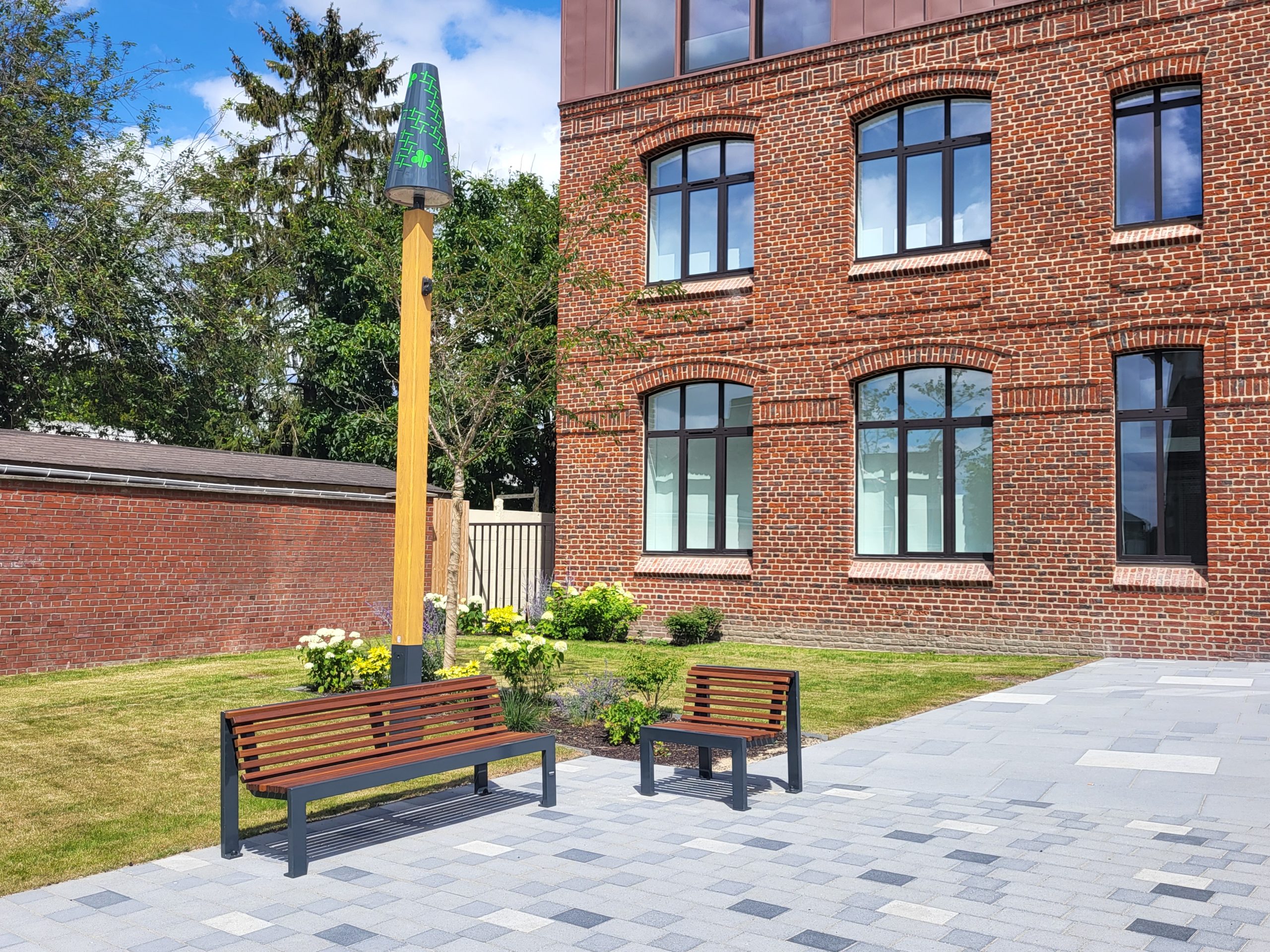 - 25 KASSIO bollards and 3 MARGO bollards from our RAGNI brand structure the pedestrian zones and the campus traffic circle.