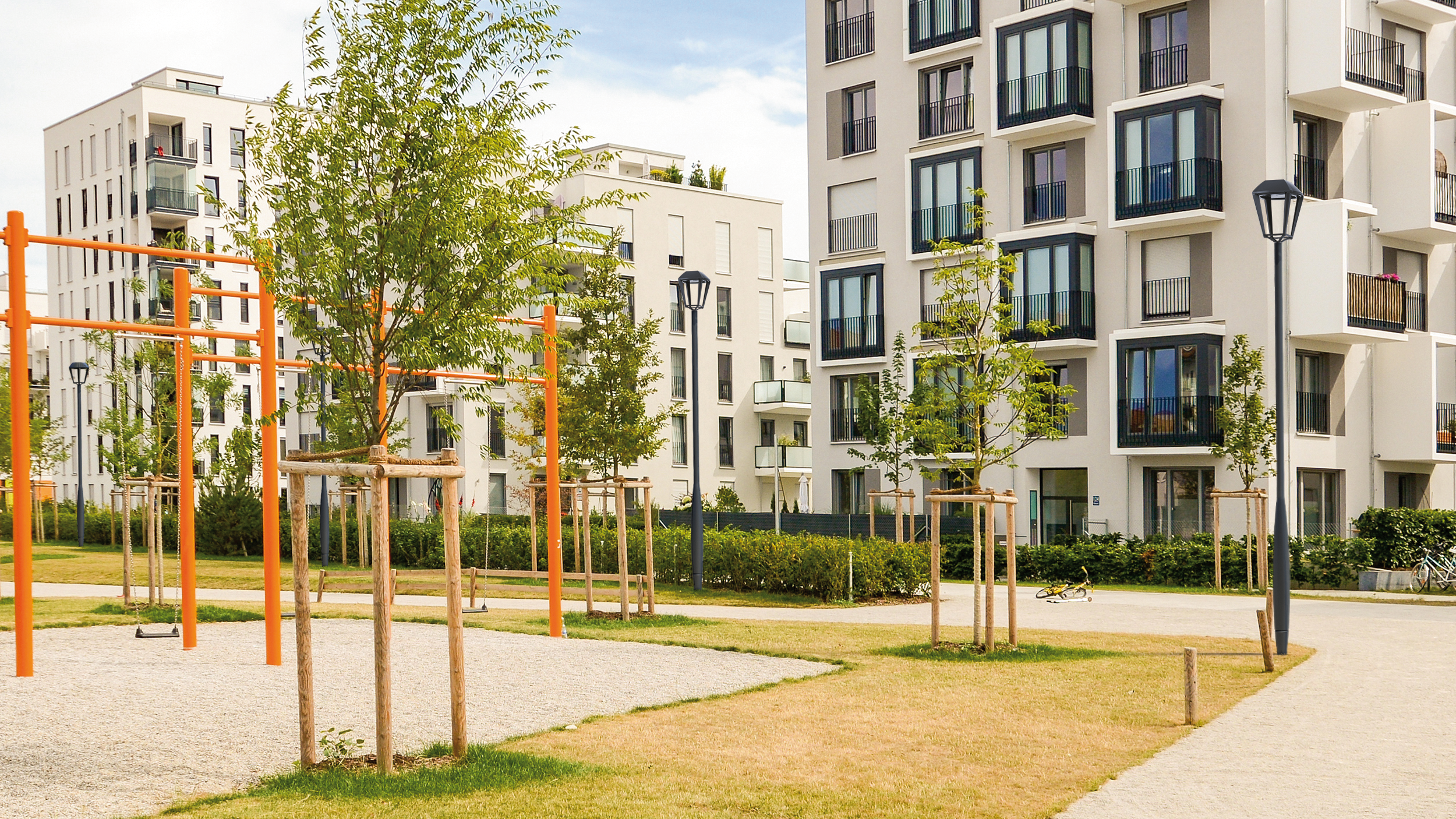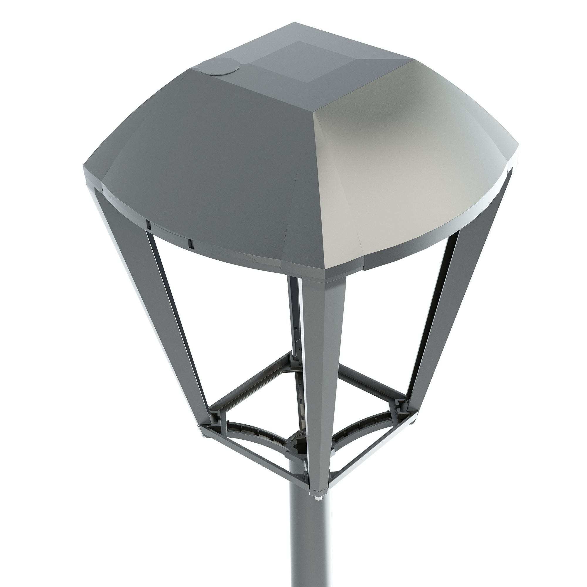 Emblem is a decorative luminaire dedicated to residential and ambient lighting. Its shape is inspired by traditional lanterns. With its 4 arms mounting bracket, it has a convex pyramidal dome with 4 sides with integrated hinge. Suspended or top mounted and made of aluminium with a tempered glass protection, it is IP66 and IK08. Emblem is equipped with an 8 to 48 LED module that provides a wide range of color temperatures and photometrics to precisely meet the lighting needs of the project while ensuring compliance with regulations against light pollution.