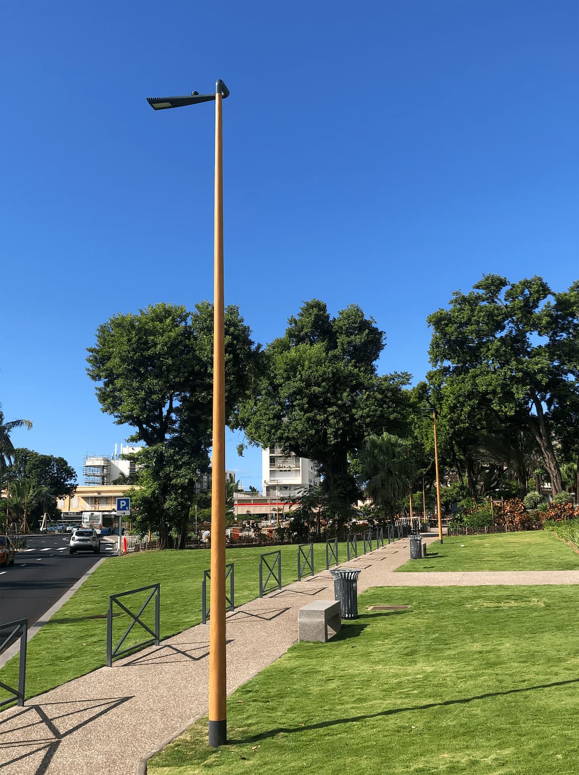 Designed to be positioned parallel to the road.