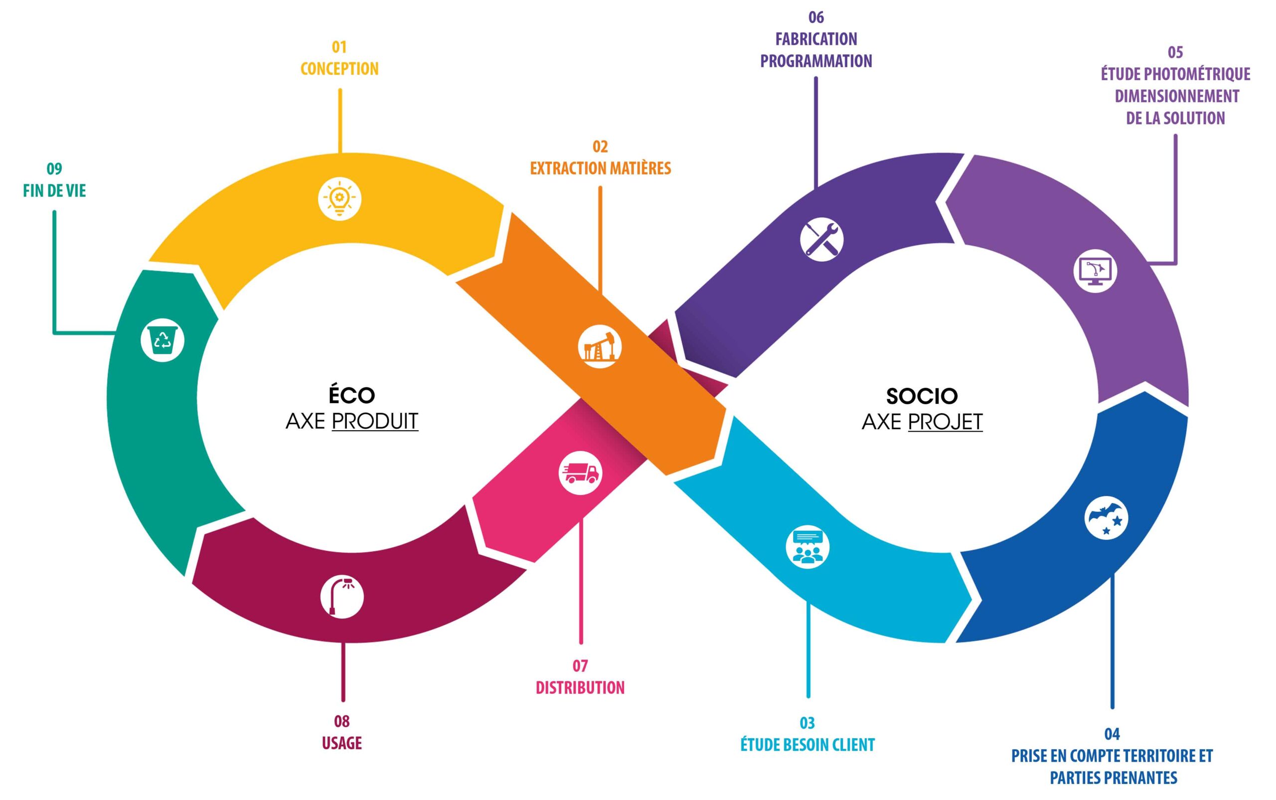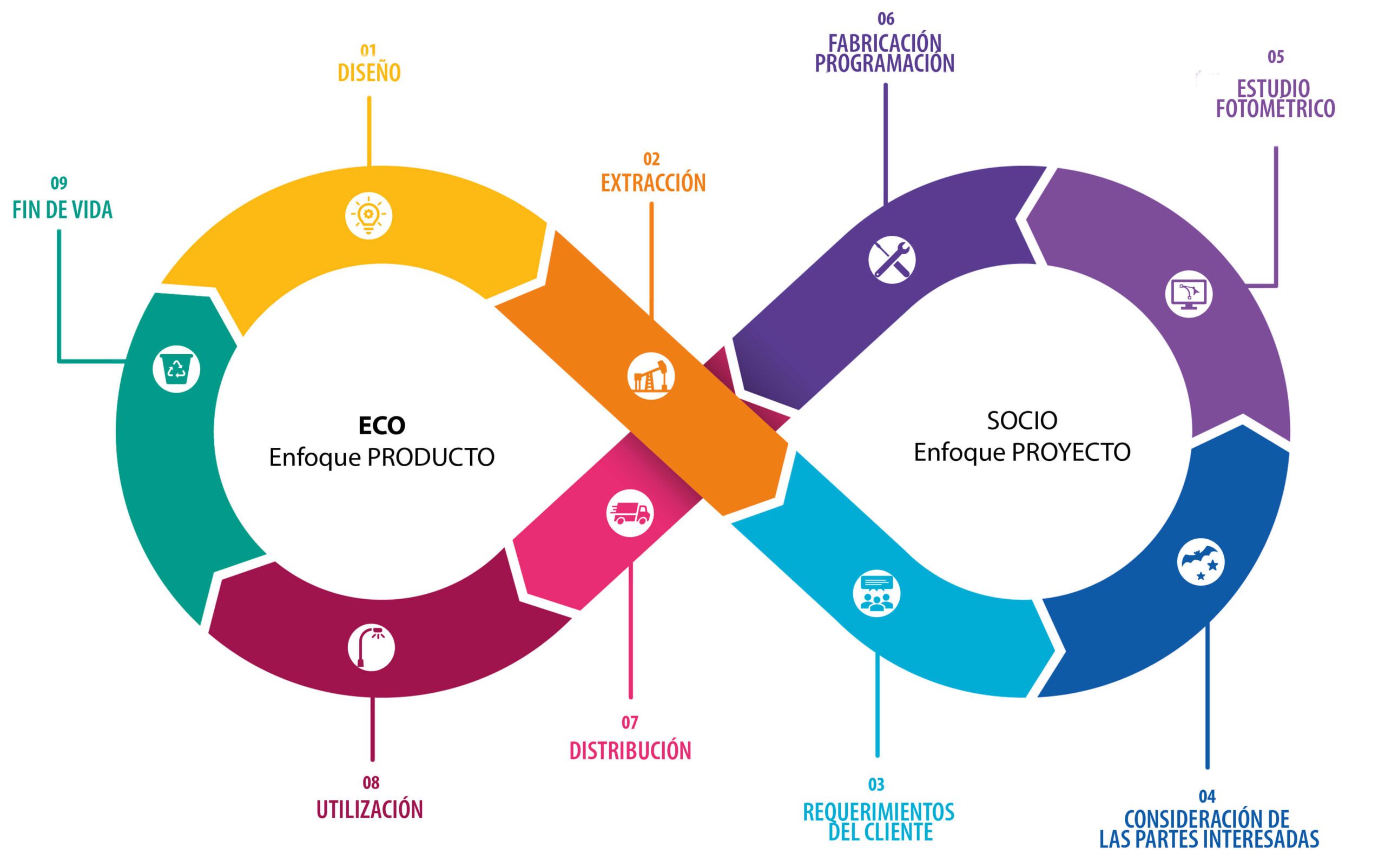 Nuestros equipos de diseño están formados en el análisis de ciclo de vida de nuestras luminarias, realizado conforme al referencial internacional PEP Ecopassport®.