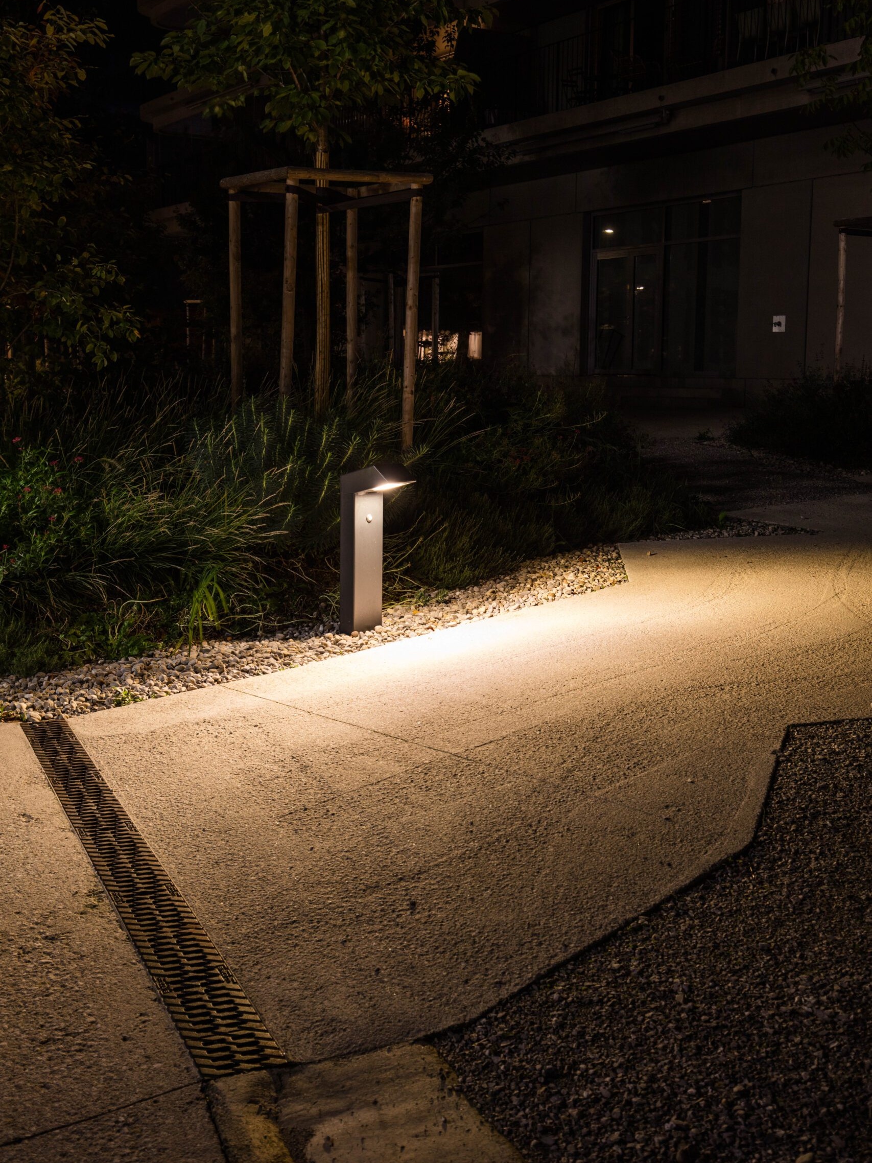 El bolardo Kassio tiene una sección transversal rectangular. La cabeza biselada que alberga el bloque óptico confiere al conjunto un aspecto decididamente geométrico. Con su cuerpo de acero galvanizado y su protección de metacrilato, ofrece un índice de resistencia IK10, con una cabeza totalmente estanca IP66. Se presenta en 3 alturas, albergando de 8 a 16 LED, y ofrece una amplia gama de temperaturas de color y fotometrías para satisfacer los requisitos exactos de iluminación del proyecto, garantizando al mismo tiempo el cumplimiento de la normativa contra la contaminación lumínica. Diseñado para proyectos urbanos y arquitectónicos, el bolardo Kassio es ideal para parques, plazas y vías peatonales.