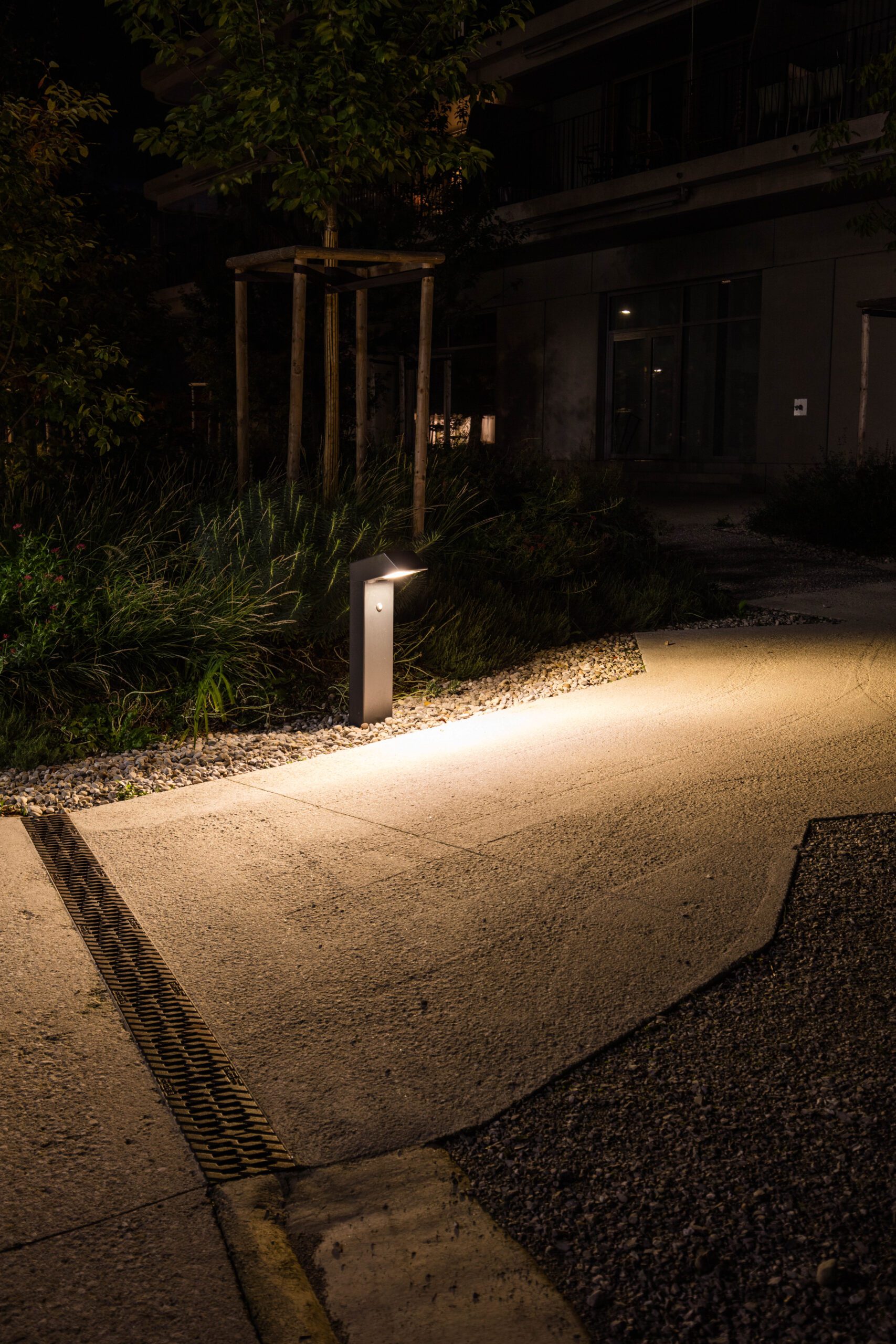 El bolardo Kassio tiene una sección transversal rectangular. La cabeza biselada que alberga el bloque óptico confiere al conjunto un aspecto decididamente geométrico. Con su cuerpo de acero galvanizado y su protección de metacrilato, ofrece un índice de resistencia IK10, con una cabeza totalmente estanca IP66. Se presenta en 3 alturas, albergando de 8 a 16 LED, y ofrece una amplia gama de temperaturas de color y fotometrías para satisfacer los requisitos exactos de iluminación del proyecto, garantizando al mismo tiempo el cumplimiento de la normativa contra la contaminación lumínica. Diseñado para proyectos urbanos y arquitectónicos, el bolardo Kassio es ideal para parques, plazas y vías peatonales.