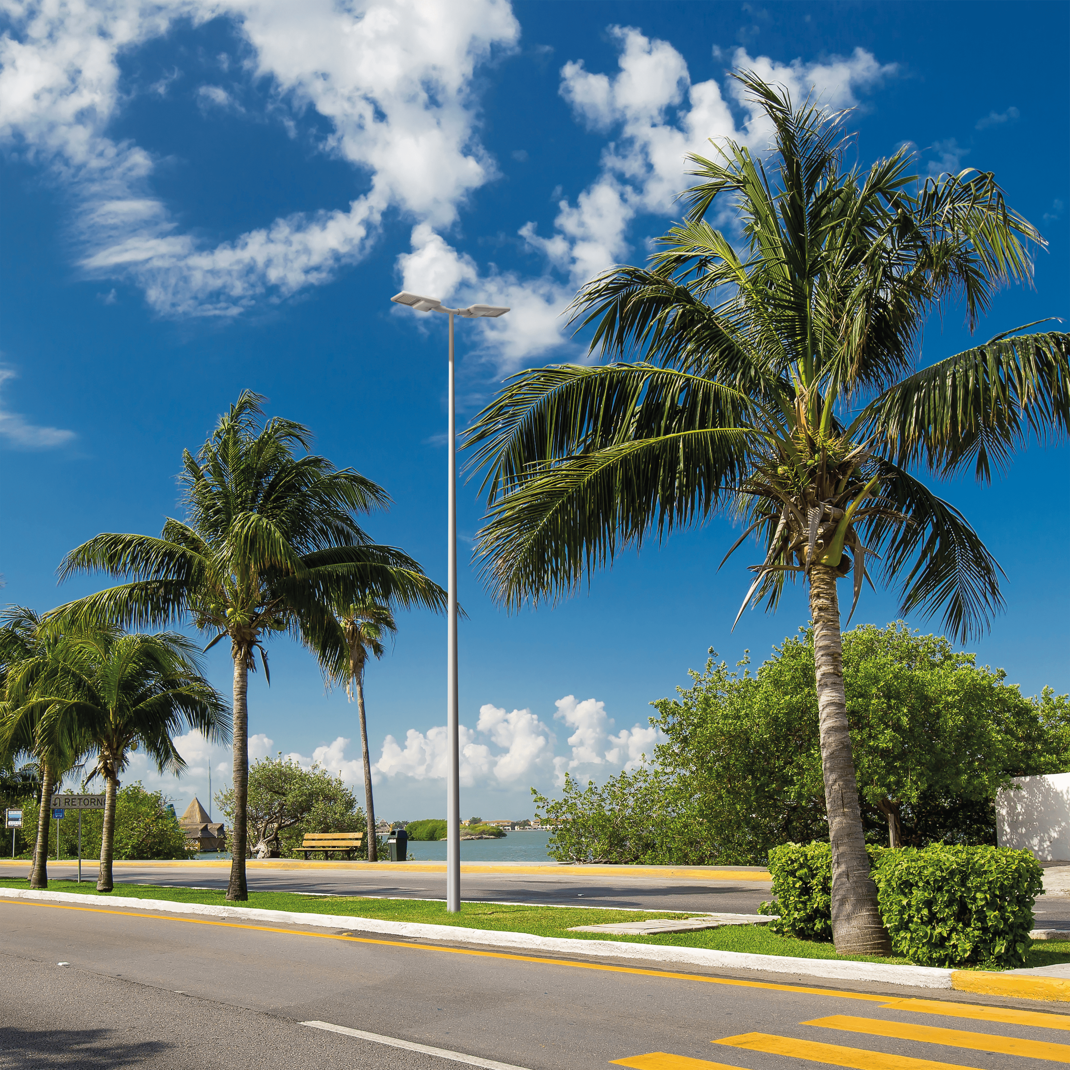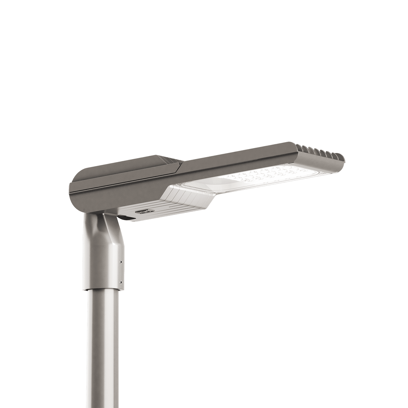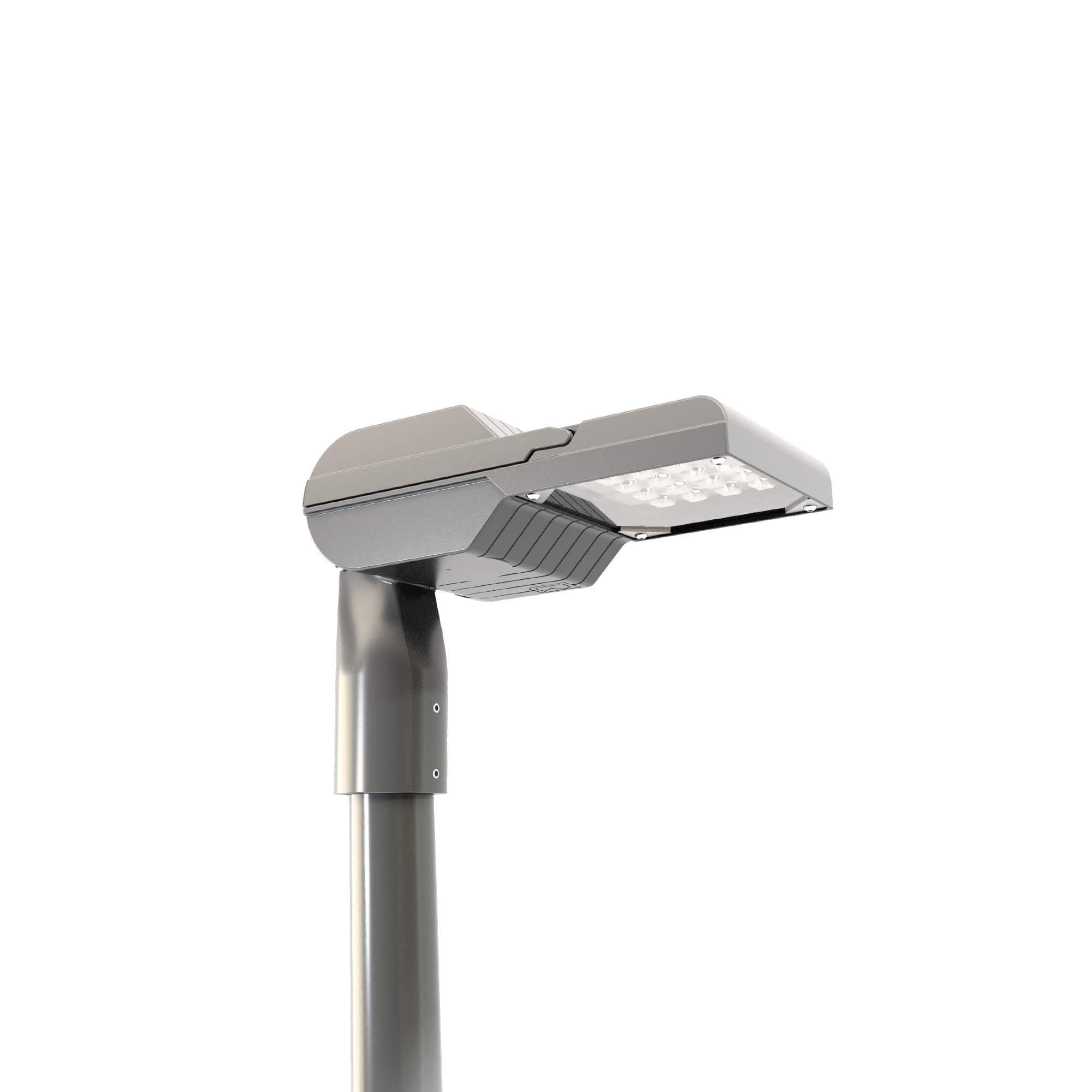 Fabriqué en aluminium et présentant des lignes symétriques, Bento est un luminaire au design minimaliste disponible en 4 tailles. De forme rectangulaire, il possède un compartiment abritant l’appareillage à l’arrière, rejoignant harmonieusement la partie éclairante. Des ailettes situées sur le dessus favorisent la dissipation thermique. Doté d’un double compartiment, il est totalement IP66. Son manchon est adaptable pour une fixation latérale ou en top avec inclinaison réglable. Bento reçoit de 8 à 72 LED selon la taille et permet, via les températures de couleur de 2700 K, 3000 K ou 4000 K, de fournir un éclairage asymétrique routier de haute performance en veillant au respect de la réglementation contre les nuisances lumineuses. Il peut être équipé de dispositifs intelligents grâce à l’intégration de socket aux standard Zhaga ou NEMA et sa certification Zhaga D4i (Book 18).