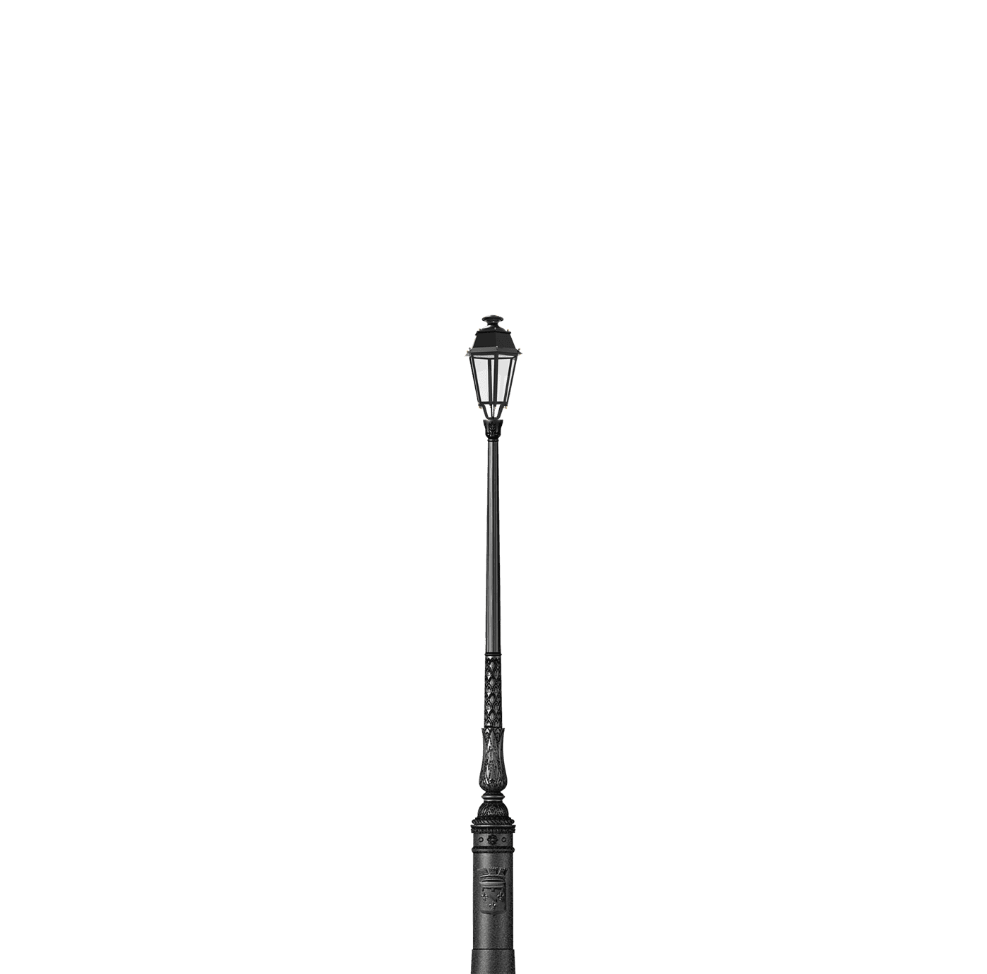 Saint-Paul est un luminaire traditionnel à six faces dédié à l’éclairage d’ambiance. Sa cage allongée de forme pyramidale inversée est tronquée et est constituée d’une base hexagonale réalisée en acier inoxydable, cuivre ou laiton. Elle est surmontée d’un chapeau également de forme hexagonale dont chaque sommet est orné d’une bille en laiton, sur le dessus et à la base. En dessous, un étirer à six bras décorés de petites billes en laiton à chacune de leur extrémité vient soutenir l’ensemble. Une bille en laiton plus volumineuse a été ajoutée à la base de l’étrier pour parfaire l’esthétique du luminaire en version suspendue. La lanterne Saint-Paul reçoit de 8 à 64 LED et permet, via les températures de couleur de 3000 K ou 4000 K, de fournir un éclairage respectueux de la réglementation contre les nuisances lumineuses. Il peut être équipé de dispositifs intelligents grâce à l’intégration de socket aux standard Zhaga ou NEMA et sa certification Zhaga D4i (Book 18). Il est équipé d’un module LED EVO2 et son bloc optique est IP66 et IK08 (IK10 sur demande).