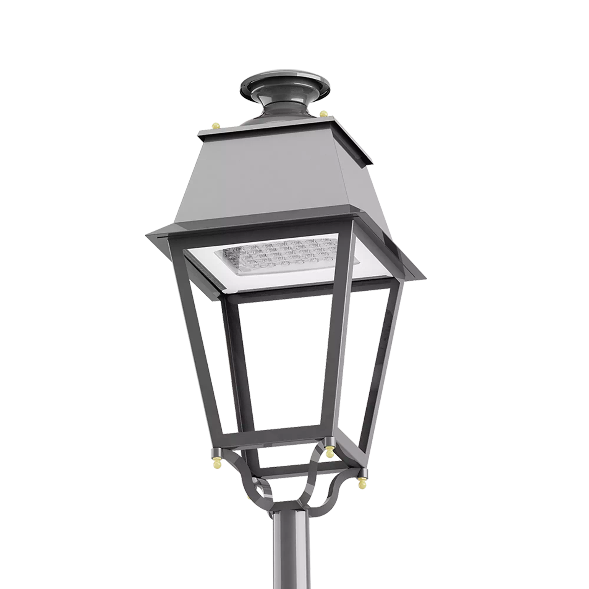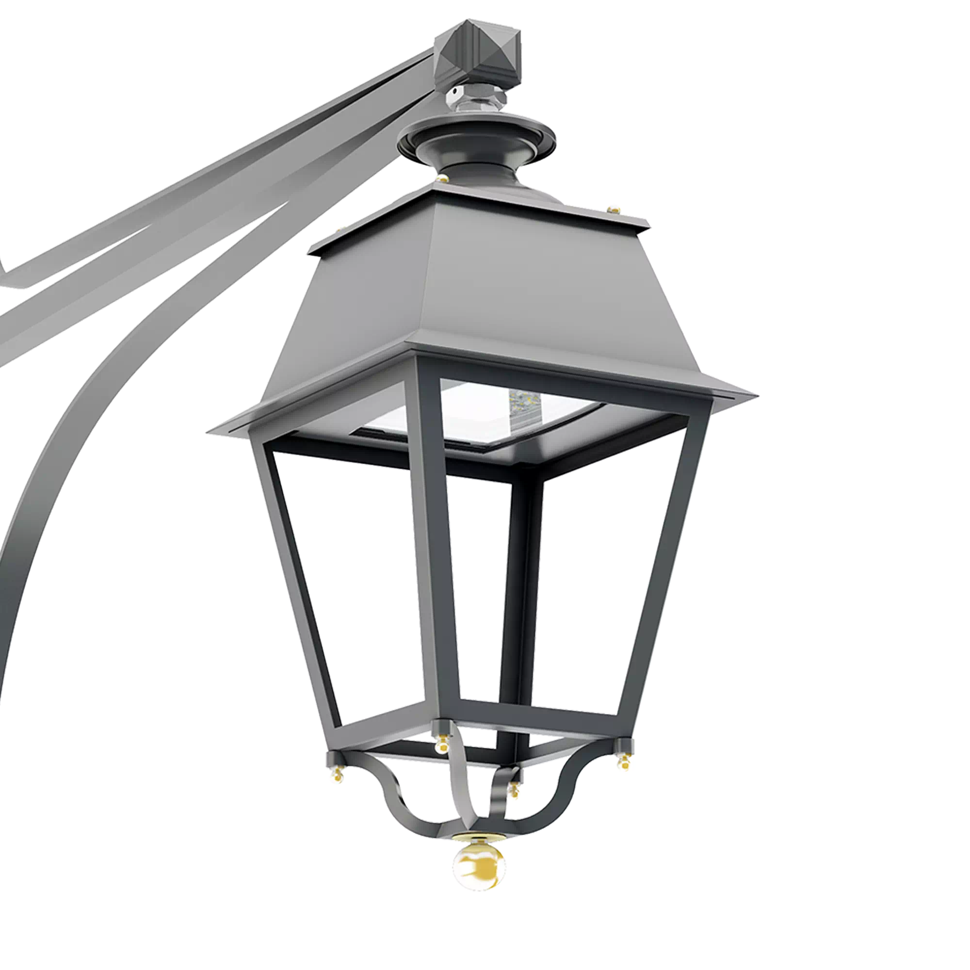 Vence est un luminaire de style destiné à l’éclairage d’ambiance. Caractéristique des lanternes traditionnelles, il est monté sur un étrier à 4 bras, chacun terminé par une bille en laiton usinée et surmonté d’un dôme pyramidal. Un champignon décoratif forme le sommet. Porté ou suspendu, le luminaire est fabriqué en acier inoxydable, cuivre ou laiton et sa protection est faite de méthacrylate (différentes textures disponibles) ou d’un verre plat. Il est équipé d’un module LED EVO2.